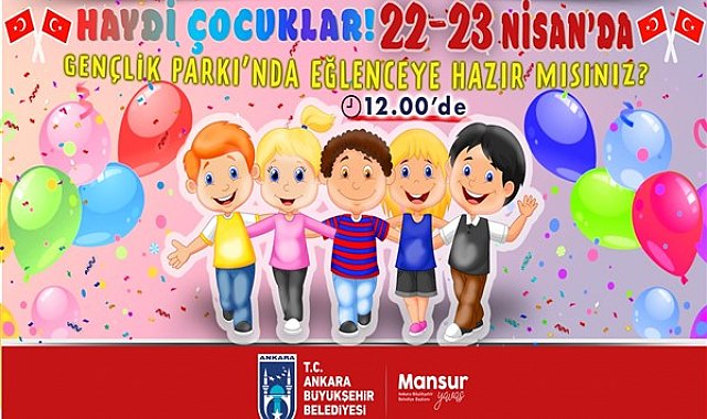 Çocuk oyunlarından konserlere, palyaço gösterisinden yüz ve kum boyamaya birçok etkinlikle Başkentli çocukların unutulmaz dakikalar yaşayacağı Çocuk Festivali; 22-23 Nisan tarihlerinde Gençlik Parkı’nda gerçekleşecek.Ankara Büyükşehir Belediyesi, 23 Nisan Ulusal Egemenlik ve Çocuk Bayramı’nı düzenleyeceği çeşitli etkinlikler kutlamaya hazırlanıyor.Büyükşehir Belediyesi Kültür ve Sosyal İşler Dairesi Başkanlığı, çocuklara özel festival programı hazırladı. Gençlik Parkı’nda düzenlenecek Çocuk Festivali’nde; Başkent Şehir Tiyatroları’nın çocuk oyunlarından Kent Orkestrası’nın konserlerine, palyaço gösterisinden yüz ve kum boyamaya, illüzyondan bubble şova birçok etkinlikle Başkentli çocuklar unutulmaz bir bayram yaşayacak. 22-23 Nisan tarihlerinde gerçekleşecek ve ücretsiz olacak festival, saat 12.00’de başlayacak.