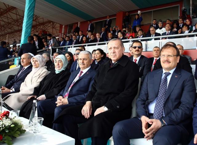 Cumhurbaşkanı Recep Tayyip Erdoğan, Çanakkale 18 Mart Stadyumu’nda gerçekleştirilen, 18 Mart Şehitleri Anma Günü ve Çanakkale Deniz Zaferi'nin 103. Yılı Töreni’ne katıldı. Cumhurbaşkanı Erdoğan, törende bir konuşma yaptı. “AFRİN ŞEHİR MERKEZİ KONTROL ALTINA ALINDI”Çanakkale Deniz Zaferi’nin 103. yıl dönümünde tüm şehit ve gazileri rahmetle anarak konuşmasına başlayan Cumhurbaşkanı Erdoğan, Afrin şehir merkezinin 08.30 itibarıyla tamamen kontrol altına alındığını bildirdi.“Afrin şehir merkezinde artık terör örgütünün paçavraları değil, huzurun ve güvenin sembolleri dalgalanıyor. Şu anda orada Türk bayrağı dalgalanıyor, Özgür Suriye Ordusu'nun bayrağı dalgalanıyor” diyen Cumhurbaşkanı Erdoğan, Türk milleti olarak dün Çanakkale'de hangi heyecan azim ve inançla mücadele edildiyse, bugün de sınırlar içinde ve dışında aynı şekilde bir mücadelenin yürütüldüğünü kaydetti. “BU OPERASYONLA TÜRKİYE MAZLUMUN YANINDA OLDUĞUNU TÜM DÜNYAYA GÖSTERDİ” Türkiye’nin, Zeytin Dalı Harekâtı’yla haklının ve mazlumun yanında olduğunu tüm dünyaya gösterdiğini belirten Cumhurbaşkanı Erdoğan, Afrin’de teröristlerin izleri silinirken aynı zamanda altyapısından üst yapısına bölgenin yaşanabilir hâle getirileceğini belirterek, “Hâlen ülkemizde veya diğer yerlerde yaşayan bölge halkının en kısa sürede yurtlarına, evlerine kavuşmaları için gereken her türlü adımı atacağız” dedi. Cumhurbaşkanı Erdoğan konuşmasının devamında şunları kaydetti: “Milletimiz 15 Temmuz'da yüreğinde imanın da cesaretin de sapasağlam ayakta olduğunu cümle âleme göstermiştir. Baktılar ki içeriden olmuyor, bu defa sınırlarımız dışından ülkemizi kuşatmaya kalktılar. Suriye sınırımız boyunca, 911 kilometre, bu girişimi de önce Fırat Kalkanı, sonra Zeytin Dalı Harekâtları ile yerle bir ettik, ediyoruz. Hamdolsun terör koridoru zinciri şimdilik 4 noktadan kırıldı. Zincirin kalan halkalarını de en kısa sürede tane tane kıracak ve bu oyunu tamamen bozacağız.”