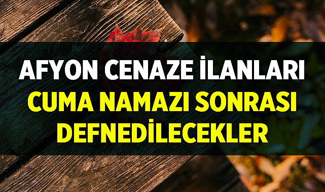 Afyonkarahisar’da vefat eden vatandaşlara ilişkin cenaze ilanları yayımlandı. Cenazeler, Cuma namazına müteakip kılınacak cenaze namazlarının ardından defin edilecek.