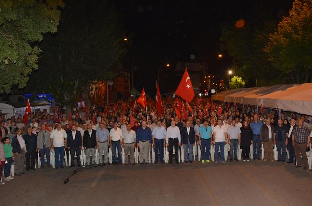 FETO/PDY terör örgütünün darbe kalkışması sonrası 21 gündür meydanları terk etmeyen binlerce Afyonkarahisar’lı Anıtpark önünde demokrasi nöbetine devam etti.