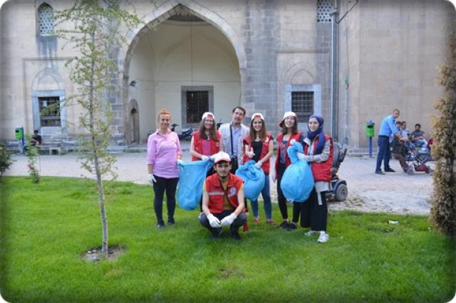 Gençlik Liderleri ve Gönüllü gençler tarafından 5-11 Haziran tarihleri arasında ülkemizde çeşitli faaliyetlerin düzenlendiği “Çevre Koruma Haftası” kapsamında şehrimizde en çok kullanılan ve vakit geçirilen yerlerden biri olan İmaret Caminin bahçesini temizledi. Böylece gençler çevrenin temiz tutulması konusunda farkındalık oluşturdular. Çevre kirliliğinin insan sağlığı üzerindeki doğrudan olumsuz etkisi, temiz bir çevrenin herkesin hakkı olduğuna dikkat çeken gençler örnek bir davranış sergiledi. Gelecek nesillere yaşanabilir ve temiz bir çevre bırakmanın yolunun çevreyi koruma ve temiz tutma olduğunu dikkat çektiler. Yapılan faaliyete katılan gençler benzer çalışmalar yapmak istediklerini belirterek kendileri ile beraber toplumun her kesiminin çevrenin temiz tutulması konusunda duyarlı ve bilinçli olmaya davet ettiler.