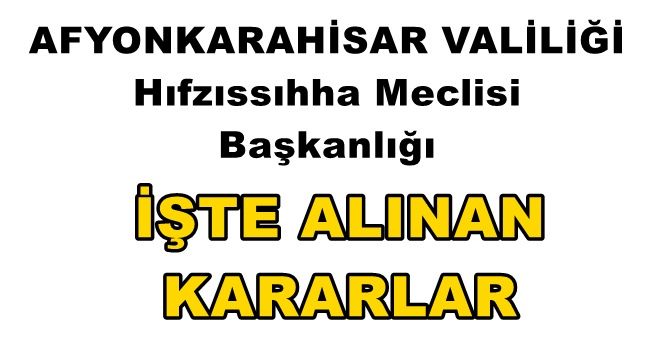 İlimiz Hıfzıssıhha Meclisi 16.08.2020 tarihinde saat 20.00'da Vali Gökmen ÇİÇEK Başkanlığında aşağıda isimleri ve imzaları bulunan üyelerin iştiraki ile toplanarak aşağıdaki kararlar alınmıştır.
