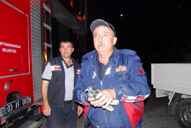 Duyarlı vatandaşların itfaiye ekiplerine , yeni binanın camında çıkmak için çırpınan bir güvercin gördüklerini söylemeleri üzerine olay yerine gelen ekipler 4 . kata itfaiye merdiveni ile çıkarak kanadı kırık bir şekilde çırpınan güvercini kurtardı.