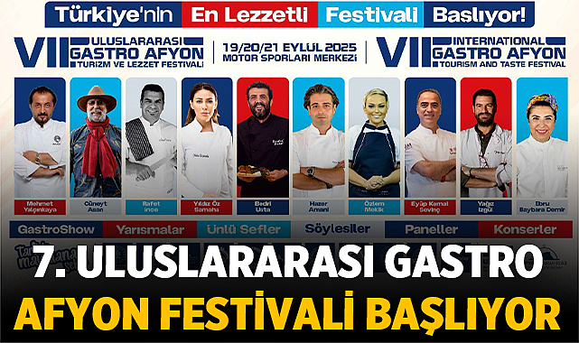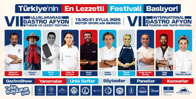 UNESCO’nun 2019’da “Yaratıcı Şehirler Ağı – Gastronomi” listesine aldığı Afyonkarahisar, 19-21 Eylül 2025 tarihlerinde 7. Uluslararası Gastro Afyon Turizm ve Lezzet Festivali ile dünyanın dört bir yanından misafirlerini ağırlamaya hazırlanıyor. Festival, Afyonkarahisar Valiliği ve Belediyesi’nin öncülüğünde; Ticaret ve Sanayi Odası, Ticaret Borsası, Zafer Kalkınma Ajansı, Afyon Kocatepe Üniversitesi, Turizm ve Gastronomi Federasyonu ve ZAFTODER iş birliğiyle gerçekleştirilecek.
