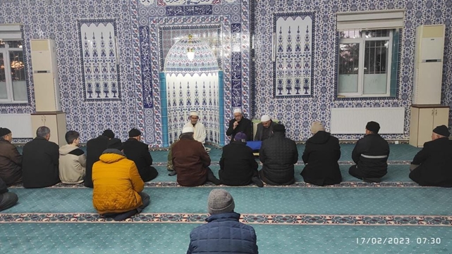 Sabah namazı sonrası yapılan programda Kur’an-ı Kerim, tesbihat, ilahi ve kasideler okundu. Programın devamında İl Müftü Vekili Harun Yılmaz tarafından sohbet yapıldı.