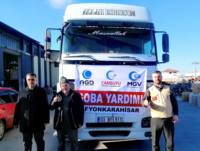 Anadolu Gençlik Derneği Afyonkarahisar Şubesi - Cansuyu Derneği Afyonkarahisar Temsilciliği öncülüğünde ve diğer MİLKO kuruluşlarının da desteği ile özel olarak üretimi yapılan sobalar bugünden itibaren depremzedelere dağıtılmaya başlanacak. Depremin yaşandığı ilk günden itibaren Afyonkarahisar’dan 4. Yardım tırını bölgeye gönderen MİLKO’lar adına açıklama yapan AGD Afyonkarahisar Şube Başkanı Muharrem Coşkun; Kahramanmaraş merkezli depremlerde hayatını kaybedenlere Allah'tan rahmet, yakınlarına da baş sağlığı temennisinde bulundu. Coşkun, çok büyük acılar yaşandığını dile getirerek, "Acımız büyük, milletçe paylaşarak azaltmanın derdindeyiz." ifadesini kullandı.