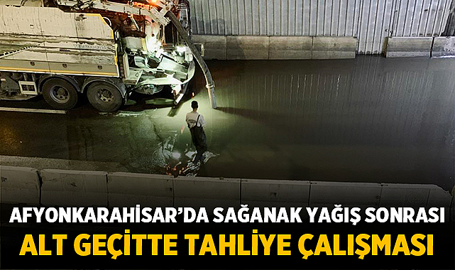 Afyonkarahisar’da akşam saatlerinde etkili olan sağanak yağış, kentte bazı noktalarda su birikintilerine yol açtı. Şükrü Çelikalay Alt Geçidi’nde biriken yağmur suları, trafiğin aksamaması için gece boyunca belediye ekiplerince tahliye edildi.
