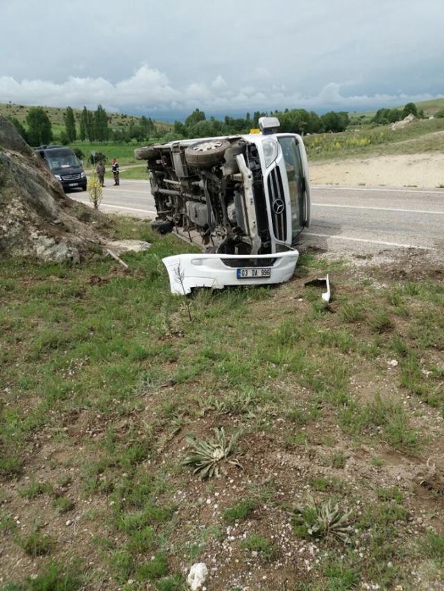 Döğer'den Afyonkarahisar'a yolcu taşıyan minibüs Üçler kayası virajında trafik kazası yaptı.