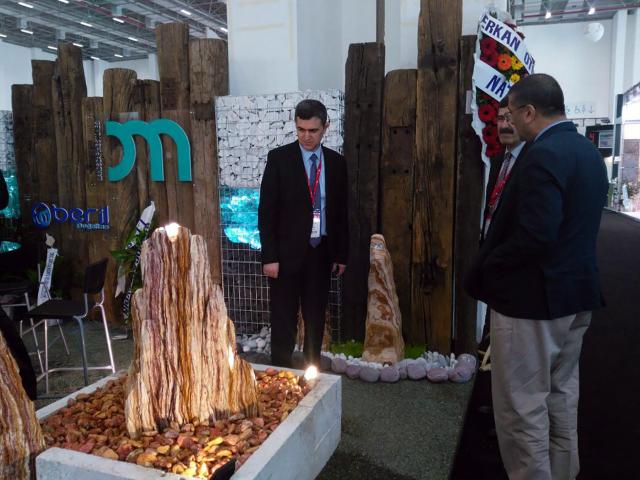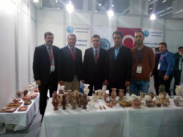 AKÜ’nün Akredite Doğaltaş Analiz Laboratuvarı (DAL), Afyon Meslek Yüksekokulu ve İscehisar Meslek Yüksekokulu ile temsil edildiği fuarda Sağbaş ve beraberindeki heyet Afyonkarahisar’dan katılan doğaltaş firma temsilcilerini ziyaret ederek görüş alışverişinde bulundu.