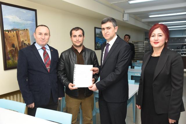 Törenin sonunda eserleri sergilenen Güzel Sanatlar Fakültesi öğrencileri Ömer Marhan, Abdurrahman Tabur, Rahime Nur Büyüksolak ve Barış Öbek’e teşekkür belgeleri takdim edildi.