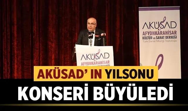 ve uzunca bir süre alkışlandı.Verilen 15 dakikalık aradan sonra Afyonkarahisar Kültür ve Sanat Derneği Başkanı Rüştü OKYAR konser programının onur konuğu, kültür ve sanat dostu Sayın Hasan BİLGE’ ye derneğin ve topluluğun ONURSAL BAŞKANLIK Beratını takdim etti. Bu törenden hemen sonra AKÜSAD Türk Müziği Topluluğu, Şef Doç. Dr. Yıldırım AKTAŞ yönetiminde konser programının ikinci bölümüne geçildi. Bu bölümde Muhayyerkürdî, Kürdi ve Acemkürdi makamındaki Türk Müziğinin en seçkin eserleri seslendirildi. Bu bölümün solo performanslarında Ayhan DOĞRU, Hakan KOZAN ve Ali Fikret AYDIN sahne aldılar.