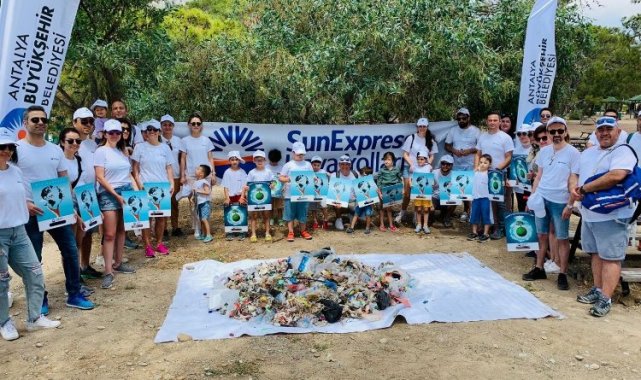 Antalya'da SunExpress kıyıdan 75 kilogram atık topladı