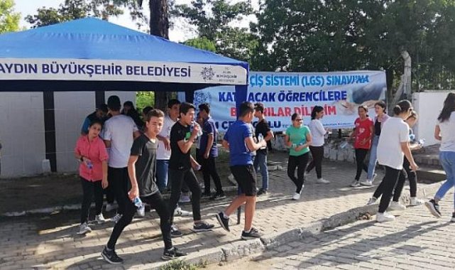 Aydın'ın 17 ilçesinde sınav yapılan okullarda hazır bulunan AYBA ekipleri, sınava katılan ögrencilere ve velilerine su dağıttı.