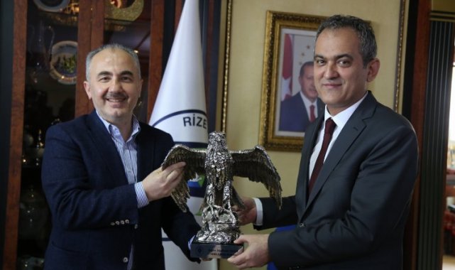 Milli Eğitim Bakanı Mahmut Özer, programları kapsamında Rize'ye gelerek Rize Belediyesi'ni ziyaret etti.RİZE (İGFA)- Milli Eğitim Bakanı Mahmut Özer, Rize Belediye Başkanı Rahmi Metin tarafından belediye binası önünde karşılandı. Ardından başkanlık makamına geçilerek belediye çalışmalarının son durumu hakkında bilgilendirmelerde bulunuldu.Belediye Başkanı Metin, tarafından Bakan Özer'e günün anısına Rize çayı ve Atmaca heykeli hediye edildi. Bakan Özer, Başkan Metin'in göstermiş olduğu misafirperverlikten ötürü teşekkür etti. Başkanlık makamındaki görüşmenin ardından Bakan Özer ve beraberindeki heyet AKPARTİ İl Başkanlığını ziyaret etmek üzere belediyeden ayrıldı.