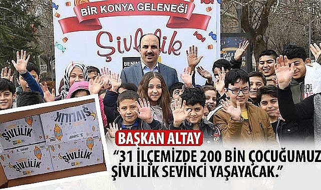 Konya Büyükşehir Belediyesi, Konya’ya özgü bir gelenek olan şivlilik kültürünün yaşatılması amacıyla 31 ilçedeki 200 bin anaokulu ve ilkokul öğrencisine şivlilik sevinci yaşatacak. Konya Büyükşehir Belediye Başkanı Uğur İbrahim Altay, “Okullarda karnelerin dağıtılacağı cuma günü tüm çocuklarımıza şivlilik hediyelerini vereceğiz inşallah. Amacımız hem şivlilik geleneğini yaşatmak hem de çocuklarımızın ara tatile mutlu girmelerini sağlamak.” dedi.