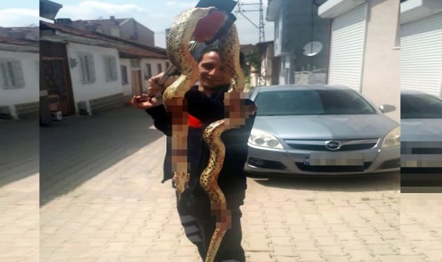 Bilecik'in Pazaryeri ilçesinde mahalle arasında dev yılan görenleri korkuttuPazaryeri Gündem / BİLECİK (İGFA) - Bilecik'in Pazaryeri ilçesi Yeni Mahalle'de sokak ortasında dev yılanı görenler itfaiye ekiplerinden yardım istedi.Kısa sürede yılanın görüldüğü mahalleye gelen ekipler, sokaktaki 2,5 metrelik yılanın köpekler tarafından parçalandığı gördü.Yılanın sokağa nereden geldiği belirlenemezken telef olmuş yılan Pazaryeri Belediyesi'ne ait iş makineleriyle boş arazide kazılan derin çukura gömüldü.