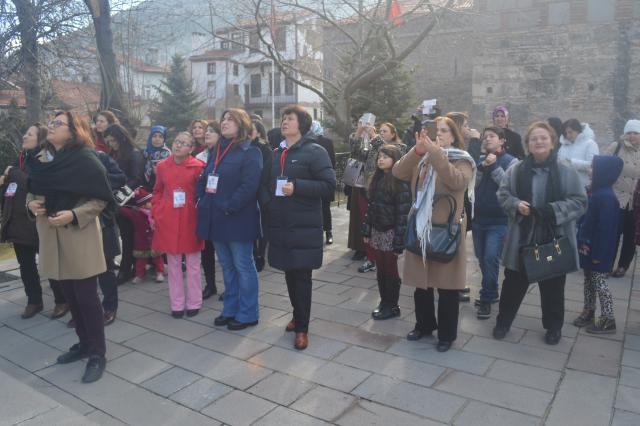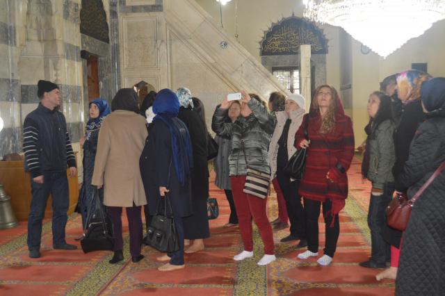 Gazeteciler Afyon’a hayran kaldıTürkiye Gazeteciler Konfederasyonu’na üye, tüm Türkiye’nin federasyon cemiyet ve dernek başkanları Afyonkarahisar’da toplandı. Ege Gazeteciler Federasyonu ve Afyonkarahisar Gazetecileri Derneği organizasyonuyla Korel Termal Otel’de misafir edilen gazeteciler ve eşleri Afyonkarahisar’ı keşfetme imkanı buldu. 40 DİREKDE BİRBİRİNDEN FARKLIGazeteci eşleri ilk olarak Afyon kalesinin eteklerinde olan tarihi Ulu Camiyi gezdi. Afyon’un en büyük camilerinden birisi olan Ulu Cami, Anadolu Selçukluları devrinde 1272 yıllarında Sahipata Nusretiddün Hasan tarafından yaptırılmış olup, tamamen el yapımı bir çivi bile kullanılmadan, ahşap tavanlı ve 40 ahşap direğin bu tavanı tuttuğu aynı zamanda 40 direği de birbirinden farklı olan mimari yapı ilgi çekti. Ulu Cami İmamının, cami ile ilgili verdiği bilgileri bayanlar ilgiyle dinledi. TARİHİ HAMAMA İLGİ YOĞUN OLDUİkinci durak olarak Millet Hamamı (Gavur Hamamı)’na gidildi. Millet Hamamı yetkilisi hamamın tarihi ile ilgili kısa bilgiler verdi. Yetkililer, “Osmanlı döneminde bu mahallede Ermenilerin yaşamaları ve hamamın Ermeni ustalar tarafından yapılmış olması nedeniyle hamama Gavur Hamamı adı verilmiştir” dedi. Hamam’da ney, saz, iğne oymacılığı vb. kursların verildiğini gören bayanlar kursiyerlerin yanında vakit geçirip, kurslar hakkında bilgi aldılar. Hamama olan ilgi de büyüktü. GELENEĞİ DEVAM ETTİREN TEK MEVLEVÎHÂNEÜçüncü durak olarak Mevlevi (Türbe) Cami ve Müzesi gezildi. Cami güzergahındaki tarihi binalar hakkında da bilgiler verildi. Gazeteci eşleri ahşap binaların ve konakların önünde fotoğraf çekmeyi ihmal etmedi. Mevlevilik ve Mevlevihane hakkında bilgiler veren cami sorumlusu, “Afyonkarahisar Mevlevîhanesi’nin diğer Mevlevihaneler arasında ayrı bir yeri vardır. Mevlevîlik töresinde Konya’dan sonra ikinci sırayı alır. Semahane, mutbah ve öbür bölümleriyle birlikte esasen büyük bir mevlevîhanedir. Türbede Mevlevî şeyhlerine ait on iki ahşap sanduka bulunmaktadır. Mevlâna’nın torunlarından Âbâ Pûş-i Veli, Sultan Dîvanî (Mehmet Semâi Çelebi), Hızır Şah Çelebi gibi Mevlevî büyükleri ile Şah İsmail’in oğlu Elkas Mirza da burada yatmaktadır” dedi. AŞEVİNDE DUALAR OKUNDUTürbe’nin çıkışında Namık Kemal’in annesi Fatma Zehra Hanım’ın mezarını gören bayanlar, Namık Kemal’in hayatını merakla dinlediler. Caminin karşısında bulunan aşevinde dualar okundu, yan tarafta bulunan müze ise her ayrıntısına kadar gezildi. Aşevi yetkilisi, ‘40 Hatimli Şifalı Aşûre’ geleneği ilk defa Sultan Dîvânî zamanında Afyonkarahisar Mevlevîhânesi’nde başlamış ve birçok Mevlevîhâneye buradan yayılmıştır. Günümüzde bu geleneği devam ettiren tek Mevlevîhânedir” diye konuştu. EROS, ZEUS, HERACLES…Dördüncü durak Arkeoloji Müzesi oldu. Müze yetkilileri, “Bölgedeki 40 kadar höyük, 20 kadar antik şehirden derlenen eserlerle, Kalkolitik, Eski Tunç, Hitit, Frig, Hellenistik, Roma ve Bizans devrine ait kazı çalışmaları sonucu bulunan eserler müzemizde sergilenmektedir” dedi. Müzede Eros, Zeus ve Heracles heykellerine yoğun ilgi gösterildi. AFYON, KÜLTÜRÜNÜ VE ESERLERİNİ KORUYORGeziye ufak bir ara veren bayanlar Park Afyon Kocatepe Kahve evinde dinlenip, yemek molası verdiler. Yemekte gezilen yerlerle ile ilgili konuşan bayanlar, “Afyon tarih açısından gerçekten çok önemli bir yer. Hala Tarihi eserlerin büyük bir hassasiyetle korunması ve Belediye Başkanı’nın Afyon’un kültürünü, eserlerini koruması için uğraşması çok güzel bir şey” dedi. BİR DEHANIN ÜRÜNLERİYemek molasından sonra bayanlar İmaret Cami’yi gezmek için yola çıktı. İmaret Cami İmamından caminin tarihi hakkında bilgi alan bayanlar caminin özelliklerini duydukça her köşesinin fotoğrafını çekti. Bayanlar, “ Tarihi doku hala camide duruyor. Kemer üzerindeki ayetler, örümcek olmaması için konulan deve kuşu yumurtaları, pencerelerdeki işlemeli ahşap kapaklar, caminin yapısı hakkında bilgi veren dönen mermer çok dikkat çekici. Gedik Ahmet Paşa iyi ki Mimar Ayaz Ağa’ya bu camiyi yaptırmış” dedi. Caminin avlusunda bulunan şadırvanın özellikleri ise duyanları şaşkına çevirdi. Şadırvanda karşılıklı kolonların altında konuşanlar birbirlerini yanı başında konuşuyormuş gibi htiğini gören bayanlar Şadırvan ’da keyifli dakikalar geçirdi. Bu tarihi mekanın şadırvanı, mimari ve mühendisi bir dehanın ürünüdür diye konuşan bayanlar Şadırvan’ın fotoğrafını çekmeyi ihmal etmedi. SELÇUKLU DÖNEMİNE SIKIŞIP KALMIŞSon durak olarak Taş Medrese’yi gezen bayanlar, medresede bulunan sanat salonlarını ziyaret edip, el emeği göz nuru ürünlerini inceledi. Gazeteci eşlerine yapılan ürünler hakkında bilgiler verildi. Bayanlar , “Dekorasyonu, kendine has dokusu, içinde bulunan kafesinde kullandıkları çatal bıçak bile sanki zamanımıza ait değilmiş, tüm mekan Selçuklu Dönemine sıkışıp kalmış gibi. Taş Medrese son durak olarak çok iyi bir yer oldu. Afyon’a gelen herkes buraya gelip bir bardak çay içsin” dediler. >>> Tuğçe BAĞLIOĞLU
