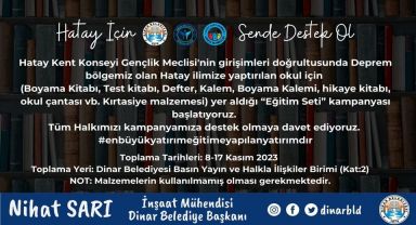 "Dinar Belediyesi, Hatay'da Depremzedeler İçin Eğitim Seti Kampanyası Başlattı" 09 Kasım 2023 - 15:50