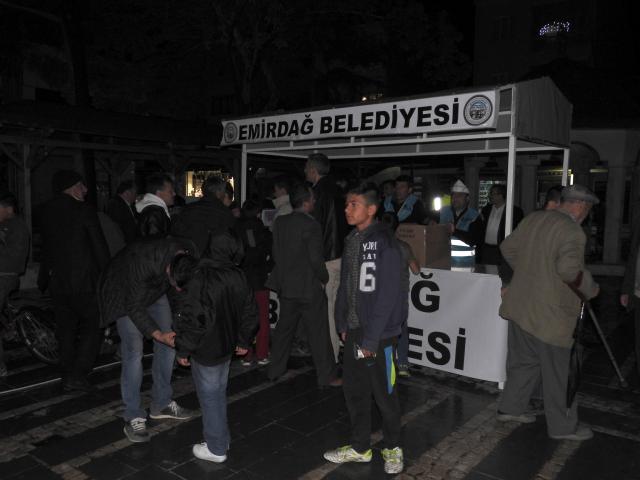 Emirdağ Belediyesi, Miraç Kandili nedeniyle, vatandaşlara kandil simidi dağıttı.Emirdağ Belediyesi Sosyal ve Kültür İşler Müdürlüğü, her mübarek gün ve gece için, kandil simidi yaptırıyor. Miraç Kandili nedeniyle dağıtım öncesi özel ambalajlara konulan kandil simitleri, Çarşı Camisi'nde açılan stantta belediye görevlileri tarafından, halka dağıtıldı.Akşam namazıyla başlayan kandil simidi dağıtımı yatsı namazı sonrasına kadar devam etti.Mübarek gün ve gecelerin halk arasında birlik ve beraberlik duygusunu her zaman pekiştirdiğine inandığını belirten Emirdağ Belediye Başkanı Uğur Serdar Kargın, Emirdağlı hemşehrilerinin ve tüm İslam aleminin mübarek Miraç Kandillerini tebrik etti.Yapılan etkinlikten dolayı duydukları memnuniyeti dile getiren Emirdağlılar, emeği geçenlere ayrı ayrı teşekkür ettiler.Bu arada vatandaşlar da belediyenin verdiği kandil simitlerine yoğun ilgi gösterdi.