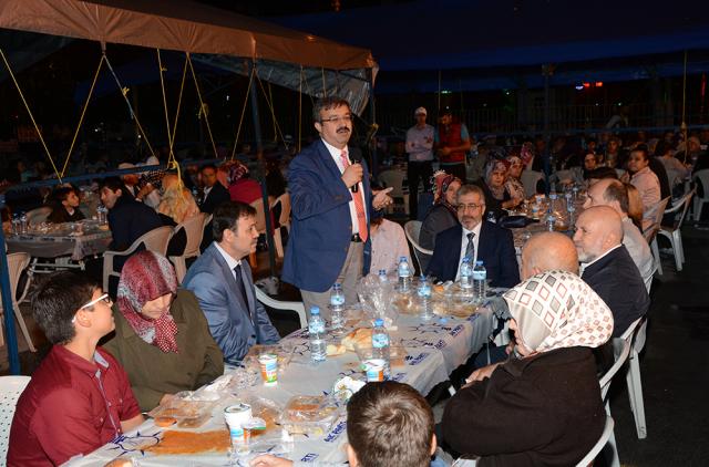 Birlik ve beraberliği son günlerde daha çok ihtiyaç duyulduğunu belirten İl Başkanı İbrahim Yurdunuseven, iftar programına katılan vatandaşlara teşekkür etti. İftar programı Kur’an-ı Kerim tilaveti ile başladı. İftar öncesi açıklamalar da bulunan Yurdunuseven, yaşanan terör olaylarına değinerek, “İstanbul Atatürk havalimanında gerçekleşen terör eyleminde hayatını kaybeden tüm vatandaşlarımıza Allah’tan rahmet, yaralı olanlara acil şifalar diliyorum. Bu tarz terör eylemlerinin amacı, ülkede bir kaos ortamı oluşturmak, halk üzerinde bir korku oluşturmaktır. Elhamdülillah halkımız bu korkuya kapılmadı” diye konuştu. VATANDAŞLAR YOĞUN İLGİ GÖSTERDİ İftar programına katılan tüm vatandaşlara teşekkür eden Yurdunuseven, Ramazan ayı içerisinde en güzel iftarlardan birisini yaptıklarını ifade etti. AK Parti Genel Merkezi tarafından ‘Gönüller Bir Soframız Bir’ sloganıyla vatandaşlarla iftar sofrasında da bir araya geldiklerini vurgulayan İl Başkanı Yurdunuseven, “Her yıl Ramazan ayında olduğu gibi bu yılda vatandaşlarımızla bir iftarda bir araya gelelim istedik. Yağmura rağmen vatandaşlarımız katılımı yoğun oldu. Vatandaşlarımızla bir arada olmak bizleri mutlu ediyor. İftar programımıza katılan tüm vatandaşlarımıza ve teşkilat mensuplarımıza teşekkür ediyoruz. Tüm vatandaşlarımızın Kadir Gecesini ve Ramazan bayramını kutluyorum” dedi. Yapılan konuşmaların ardından iftar programı yapılan dua ile sona erdi.