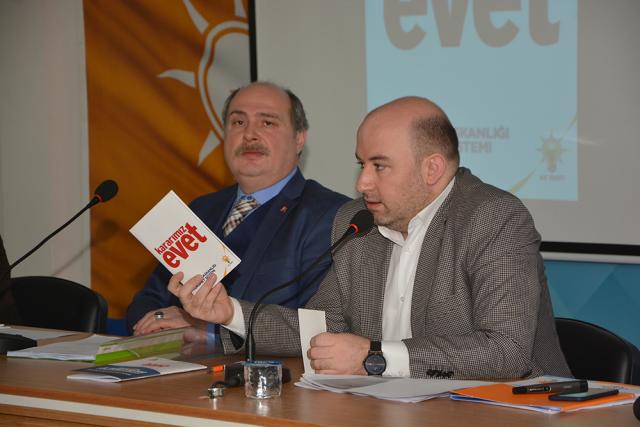 ‘Anayasa değişikliği ve Cumhurbaşkanlığı hükümet sistemi’ ile ilgili hatip ve hatibelere AK Parti İl Başkan Yardımcıları Hüseyin Tutumlu, Hüseyin Sezen ve İl Kadın Kolları Başkan Yardımcısı Büseyne Kahraman eğitim verdi.