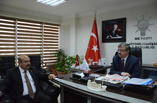 AK Parti Afyonkarahisar İl Başkanı İbrahim Yurdunuseven’i Esnaf ve Sanatkarlar Odalar Birliği (ESOB) Başkanı Abdülkadir Konak ve yönetim kurulu üyeleri ziyaret etti.