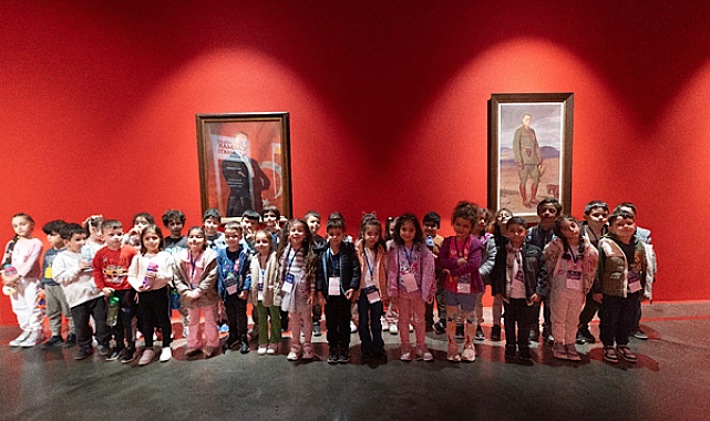 İzmir genelindeki 22 merkezde eğitim alan çocuklar, Cumhuriyet sevgilerini ve Atatürk’e duydukları özlemi resimlerle ifade etti. Kültürpark Atlas Pavyonu’nda “Ve Mavi Gözleri Çakmak Çakmaktı” Atatürk Sergisi ile dijital sanat eserleri Refik Anadol’un “Şifanın Algısı” ve “Makine Rüyaları: Ege” sergilerinin yanı sıra giriş bölümünde yer alan çocuk resimleri, alanın giriş kısmında yer aldı.