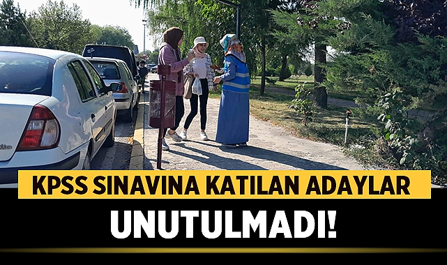 Türkiye Diyanet Vakfı Afyonkarahisar Şubesi Kadın Kolları ve TDV gönüllüleri, KPSS sınavına giren adayları unutmadı. Sıcak havalarda serinlemeleri için simit ve su ikram edilerek, sınava giren adaylara destek oldu.
