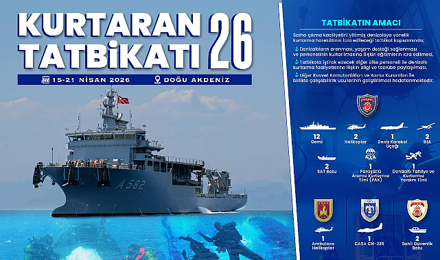 Millî Savunma Bakanlığı (MSB), KURTARAN-2026 Denizaltı Arama Kurtarma Davet Tatbikatı’nın 15 Nisan itibarıyla Aksaz açıklarında başladığını duyurdu. Tatbikatın, 21 Nisan 2026 tarihine kadar devam edeceği bildirildi.