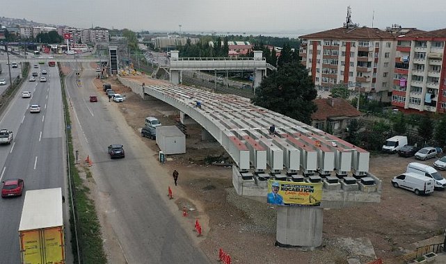 Kocaeli'nde Akçaray Tramvay Hattı’nı D-100 üzerinden Kuruçeşme’ye bağlayacak yeni tramvay hattı projesinde köprü ayakları üzerine şuana kadar 72 adet kiriş yerleştirildi