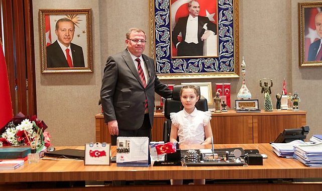 23 Nisan Ulusal Egemenlik ve Çocuk Bayramı nedeniyle Kütahya Belediye Başkanlık makamına Yunus Emre İlkokulu öğrencilerinden Zehra Betül Ak ile Hamza Sarı oturdu.