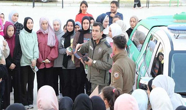 Mersin İl Emniyet Müdürlüğü bünyesindeki ekipler HAYDİ uygulaması hakkında öğrencileri bilgilendirdi.MERSİN (İGFA) - Mersin Yenişehir Batıkent Mahallesi Şehit Cennet Yiğit Kız Anadolu İmam Hatip Lisesi'nde öğrencilere konferans salonunda HAYDİ uygulaması tanıtıldı.Mersin İl Emniyet Müdürlüğü'ne bağlı ekipler, uygulama hakkında bilgi verilen öğrencilere resmi araç da gösterildi.HAYDİ uygulamasının kullanımını ve görev alanımızı içeren el broşürleri dağıtılrıken, geri dönüşüm malzemelerinden öğrencilerle birlikte sokak hayvanlarına yuvalar yapılmış olup çalışmaların devam edeceği öğrenildi.