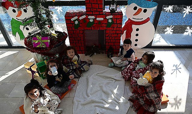 Şömine önünde kimi çocuklar kitap okurken, kimisi de arkadaşına hikâye anlattı. Miniklerden birinin ‘kahvemi döktüm ya’ demesi ise eğlenceli anların yaşanmasına neden oldu.