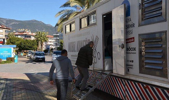 Antalya Büyükşehir Belediyesi deprem bölgesinden Alanya’ya gelen vatandaşlara kuaförlük hizmeti veriyor.