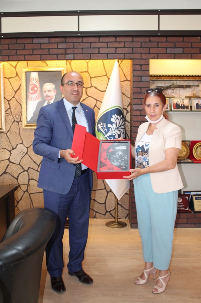 Bölge Müdürü Şerife Münire Burcu, Sandıklı Belediye Başkanı Mustafa Çöl’e Cumhurbaşkanlığı İletişim Başkanlığı tarafından hazırlanan “15 Temmuz Darbe Girişimi ve Milletin Zaferi” konulu yazılı ve görsel envanterlerden oluşan bir set hediye etti.