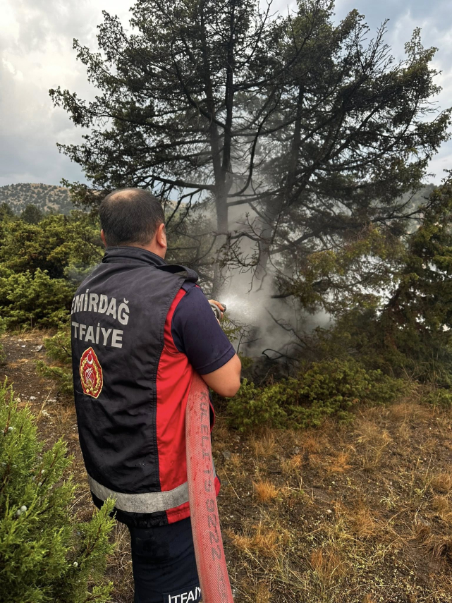 Afyonkarahisar'ın Emirdağ ilçesinde bulunan Başkonak köyü, bugün akşam saatlerinde tehlikeli bir an yaşadı. Edinilen bilgiye göre, köy yakınlarındaki ormanlık alana düşen yıldırım, kısa sürede bir orman yangını çıkardı. Yangın ihbarının alınmasıyla birlikte Emirdağ İtfaiye Müdürlüğü ekipleri derhal harekete geçti.Ekiplerin olay yerine hızlı intikali ve etkili müdahalesi sayesinde, yangın geniş bir alana yayılmadan, kısa sürede kontrol altına alındı ve söndürüldü. Bu hızlı ve başarılı müdahale, olası büyük bir orman felaketinin önüne geçerek çevresel zararın en aza indirilmesini sağladı.