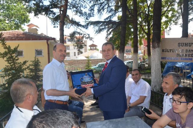 Şuhut Kültür ve Dayanışma Derneği Genel Başkanı Suat Benli ‘ Bayramın ikinci günü yönetim kurulumuzla birlikte Şuhut Atatürk Parkında Afyon ve Şuhut dışında bulunan hemşehrilerimizle buluştuk.Bayramlaştık.Görüş alış verişinde bulunduk.Aynı gün Şuhut Belediye Başkanımız Recep Bozkurt’a derneğimize yaptığı katkılarından dolayı işlemeli çini tabak hediye ettik.Daha sonra İlçemizin gururu,ilimizin onuru Orman ve Su İşleri Bakanımız Prof.Dr.Veysel Eroğlu tarafından kabul edildik.Bakan Eroğlu’na 2.Başkan Anıl Halis Akar ile birlikte İstanbul da yaptığımız Kermes ve iftar yemeği,Şuhut İlçesindeki bayramlaşma gibi konuları içeren faaliyetlerimiz hakkında bilgi arz ettik.Yeni projelerimizi paylaştık.İlçemizi sembol eden çömlek ve çini resimli tabak hediye ettik.Bu görüşmede Bakanımız destek sözü verdi.Bu vesile ile yoğun programına rağmen bizlere zaman ayıran bakanımıza yeniden şükranlarımızı sunuyoruz ’dedi.Afyonkarahisar Belediye Başkanı Burhanettin Çoban ile görüştüklerini kaydeden Şuhut Kültür ve Dayanışma Derneği Başkanı Suat Benli ‘Başkan Çoban’ı önceki gelişimizde yurt dışında olması hasabi ile ziyaret edememiştik.Şuhutlu olan Başkan Çoban ile 2.Başkan Anıl Halis Akar,Sekreterimiz İlker Çetin den oluşan heyet halinde ziyaret ederek faaliyetlerimiz paylaştık.Başkan Çoban’a da günün anısına çini tabak armağan ettik.Daha sonra Şuhut İlçesinde Şuhut AK Parti,Cumhuriyet Halk Partisi ve Milliyetçi Hareket Partisi İlçe Başkanları ve yönetimlerini ziyaret ettik.’dedi.