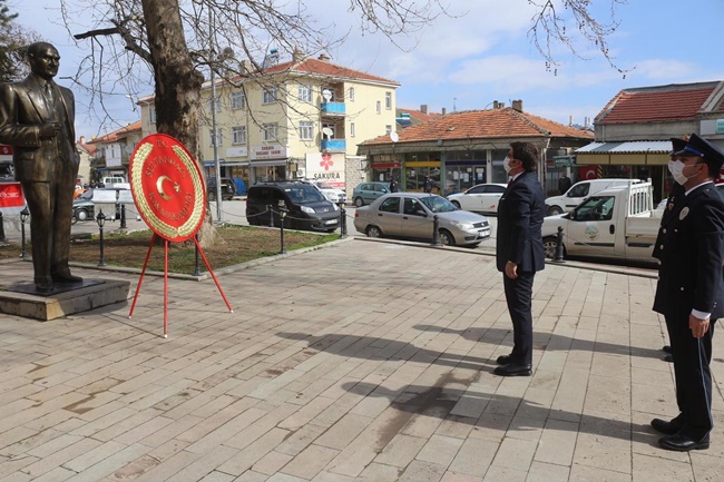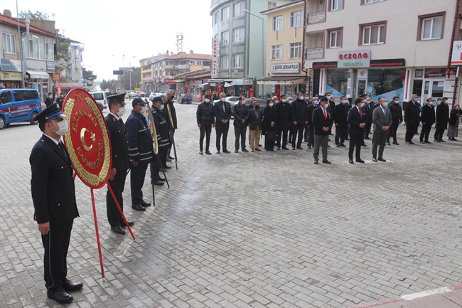 Törenler ilk olarak Cumhuriyet Meydanı’nda Atatürk Anıtı’na çelenk sunumu ile başladı. Törende Kaymakam Önder Koç, gaziler, daire amirleri, okul müdürleri, belediye zabıta ekipleri katıldı.