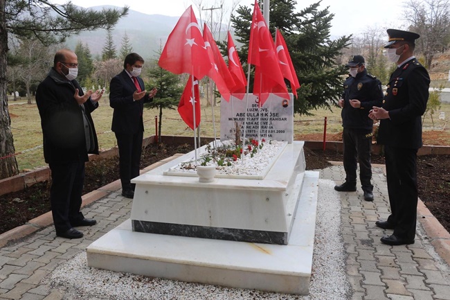 Çelenk sunum töreni sonrasında Sultandağı mezarlığında bulunan şehitlikte dualar edildi, şehit mezarlarına karanfil bırakıldı.