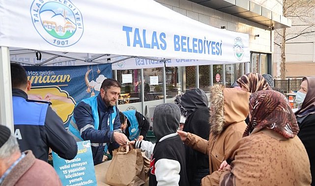 Ramazan ayı boyunca her gün saat 18.00'de başlayıp iftar saatine kadar devam eden uygulama kapsamında Atatürk Bulvarı Osmanlı Evi, Yenidoğan Mahalle Muhtarlığı önü, Tablakaya Mahalle Meydanı ve Mevlana Mahalle Meydanı Selçuklu Evi önü olmak üzere 4 noktada paketler halinde sıcak yemek servisi yapılıyor.Talas Belediye Başkanı Mustafa Yalçın'ın da zaman zaman katılarak vatandaşlarla buluştuğu uygulama Ramazan ayının son iftarına kadar devam edecek. Büyük beğeni toplayan uygulamada bu ay boyunca toplam 29 bin kişiye ulaşılmış olacak.
