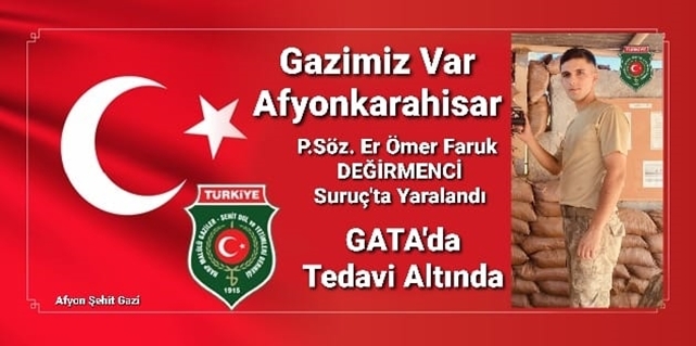 "18.09.2022 Tarihinde Şanlıurfa, Suruç, Esentepe Hdt.Krk.K.lığında Görevli İken Nöbet Değişimi Esnasında Askeri Araca Teröristlerin Roketli Saldırısı Sonucu 05.12.2000 Doğumlu Afyon, Çay, Eber Köyü Nüfusuna Kayıtlı P.Söz.Er Ömer Faruk DEĞİRMENCİ Yaralanmıştır. Yaralı Askerimiz Halen GATA'da Tedavi Görmektedir. Kulak Zarları Patlamış Hastane Tarafından Ameliyat Planlanmıştır. Haber Alır Almaz Kendisi ve Ailesi ile İletişime Geçtik Durumunu Takibe Aldık. Yaralı askerimize acil şifalar dileriz" Dedi.Şanlıurfa ili, Suruç ilçesi 3. Piyade Hudut Tabur Komutanlığına bağlı Esentepe Piyade Hudut Karakolu uzak emniyet menfez mevziine nöbet değişimi sırasında 18.09.2022 saat: 07.45 sıralarında Suriye Karamuk bölgesinden yapılan hain saldırı sonucu Piyade Sözleşmeli Er Hamza KURT, Piyade Ömer Faruk DEĞİRMENCİ (Afyon) yaralanmış, Piyade Sözleşmeli Er İsmet AYBEK Şehit olmuştur.
