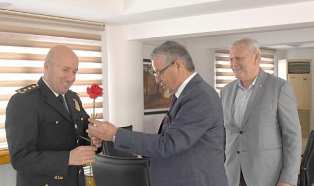 Türk Polis Teşkilatının kuruluşunun 177. yıl dönümü ve Polis Haftası nedeniyle Kemer Belediye Başkanı Necati Topaloğlu, İlçe Emniyet Müdürü Deniz Yılmaz’ı ziyaret etti.