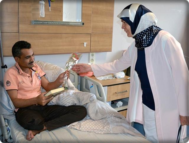 Çocuk servisinde tedavi gören hasta çocukları unutmayan Bayan Yıldırım, çocuklarla bir süre sohbet ederek onlara moral kaynağı oldu. Yine Afyonkarahisar Devlet Hastanesinde tedavi gören Yemenli Hastaları ziyaret eden Bayan Yıldırım, başlarına gelen bu elim olaydan dolayı üzgün olduklarını, ama kendilerini Afyonkarahisar’da tedavi ederek yardımcı olmaktan mutlu olduklarını söyledi. Ülkelerindeki zor dönemin bir an evvel atlatılması için dualarını eksik etmediğini söyleyen Bayan Yıldırım, Yemenli hasta kardeşlerimizin en kısa zamanda sağlıklarına kavuşmaları için destekte bulunulacağını sözlerine ekledi.