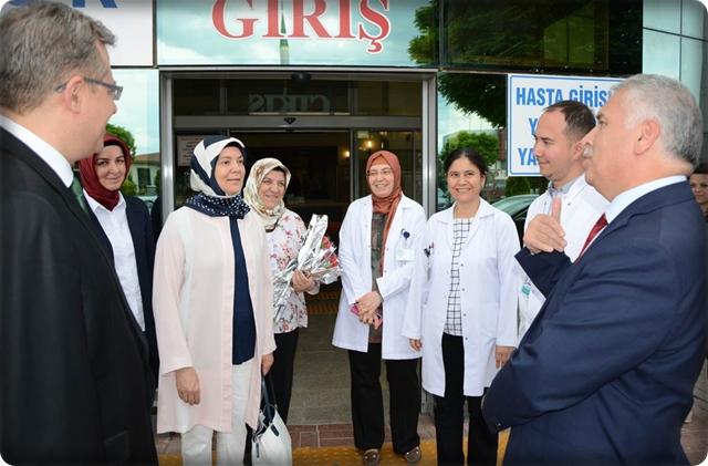 Valimiz Aziz Yıldırım ve eşi Selma Yıldırım ziyaretleri sırasında hastane çalışan ve yöneticilerine hayırlı işler temennisinde bulunurken hasta ve yakınları ile hastane çalışanlarına karanfil takdim ettiler.
