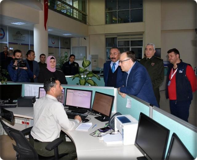 İlk olarak Güvenlik ve Acil Durumlar Koordinasyon Merkezinde (Gamer) çalışmalarını sürdüren kamu görevlilerini ziyaret eden Vali Tutulmaz yetkililerden bilgi alarak, yeni yıllarını kutladı ve başarılı çalışmalarının devam etmesi temennisinde bulundu.