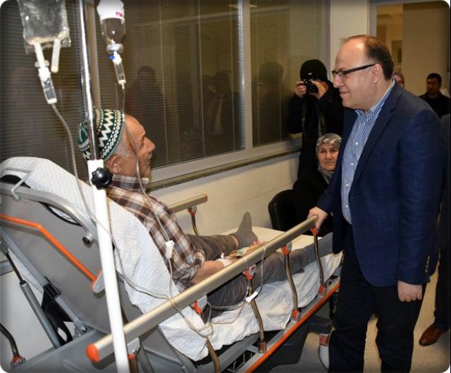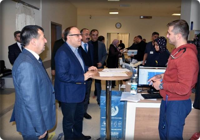 Daha sonra Afyon Devlet Hastanesi Acil Servisinde sağlık hizmetlerini yerine getiren sağlık personellerini ziyaret ederek serviste bulunan acil tedavi amacıyla bulunan vatandaşlarımıza geçmiş olsun temennisinde bulunurken, acil serviste çalışan sağlık personellerinin de yeni yıllarını kutlayarak çalışmalarında başarılar diledi.