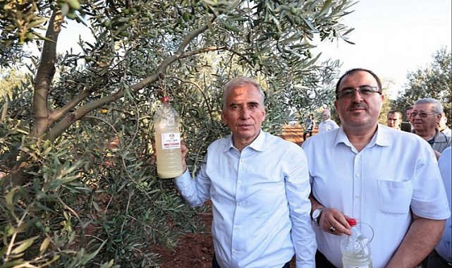 Konuşmanın ardından Başkan Zolan ve beraberindekiler biyoteknik mücadelede kullanılacak DAP gübresi ile zeytin sineğine karşı kullanılacak karışımın konacağı 2 litrelik pet şişeleri üreticilere dağıttı. Biyoteknik mücadele kapsamında, yapılacak karışımların pet şişelere konularak zeytin dalına nasıl bağlanması gerektiği tek tek anlatıldı. Bir süre burada vatandaşlarla sohbet eden Başkan Zolan daha sonra biyoteknik mücadele uygulamasının ilk olarak yapılacağı Mehmet Doğanlı'ya ait zeytin bahçesine giderek, zeytin sineğine karşı yapılan karışımın bulunduğu pet şişeyi zeytin dalına bağladı.